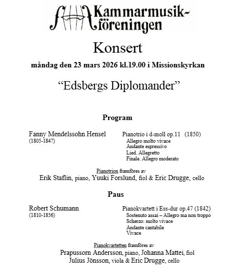 23 / 3 – Lunes. Quintin en concierto en Uppsala: Schumann deslumbrante, la Fanny Mendelssohn reguleque